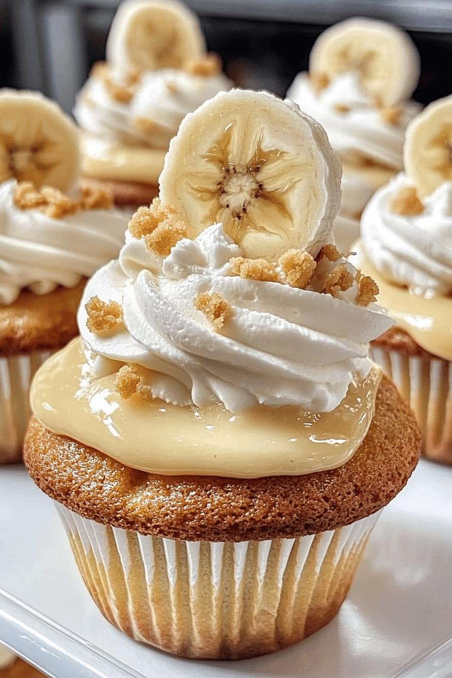 Using a piping bag or a spatula, generously frost each cupcake with the whipped cream. For an extra touch, you can garnish with sliced bananas or crushed vanilla wafers. This adds a lovely crunch and enhances the banana flavor!